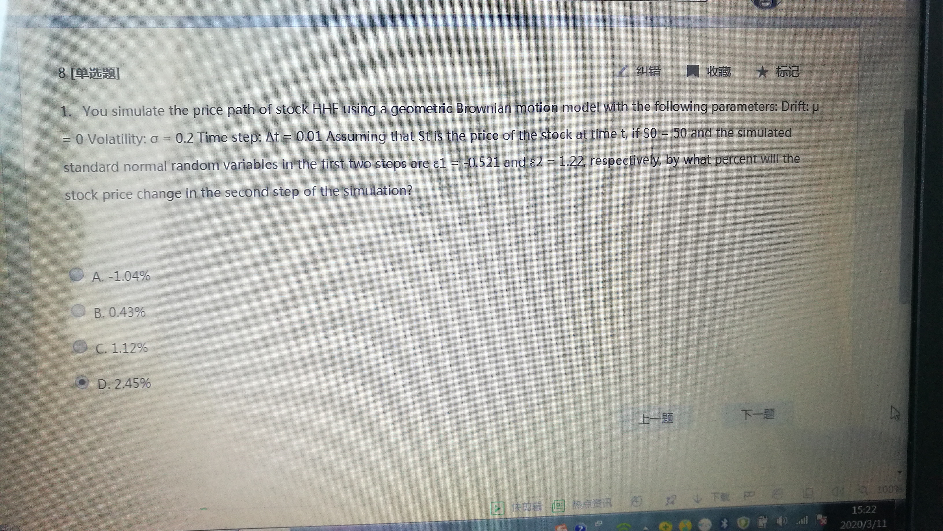 此题考察的是几何布朗运动 属于老考点了 考的概率不大 如果有兴趣 请看附件图片