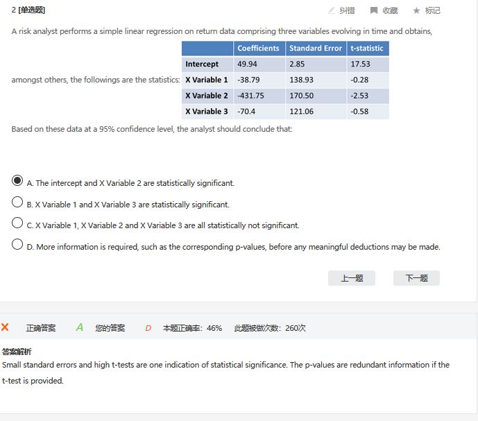 不要看答案解释了 表格给出的是t statistics 所以肯定是t test,题目给出的是95%confidence level,那么你就去查t table,看critical value和表格中的t statistics比较哪个大哪个小,落入confidence level的就是不显著的,在外面的就是显著的 答案说得意思是:standard error小,自然他 statistics就大,是相同的指标。