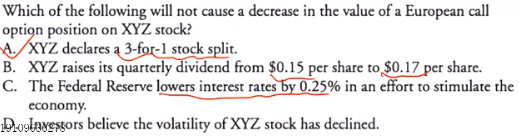 call option的payoff是S0-Xe(-rt)次方,当利率下行时,整个call的payoff是下降的。