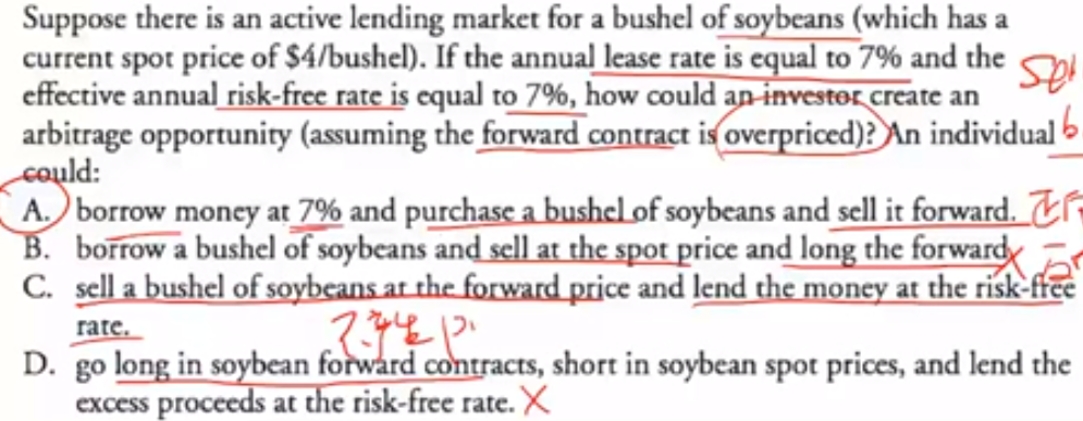 这题C没太看懂,sell a bushel of soybeans at the forward price and lend the money at the risk-free rate是什么操作,现实中有这种操作吗?以远期合约的价格卖现货会有人买吗?