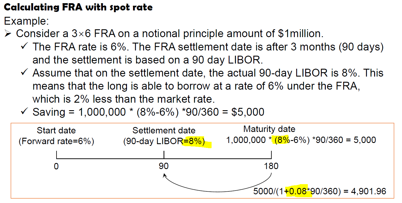 90天的8%是定的未来三个月libor 而180天的maturity的公式里的8%还是指的第90天的libor 但是需要在到期日时计算差价,然后由到期日推算PV 这个公式里8%-6%的8%还是第90天的那个libor