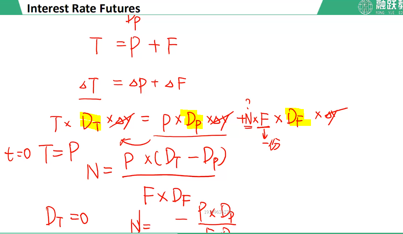 T这里指的是目标组合Target简写成了T,老师里面讲课很清楚了啊,你手里面有现货组合P,期货组合F,构成一个新的组合T(目标组合);如果利率发生变动现货组合与期货组合的价格都会产生波动,这个时候如果现货组合p下跌程度与期货组合上涨程度波动一样,就完美对冲了;ΔT就代表两个资产变化程度之和