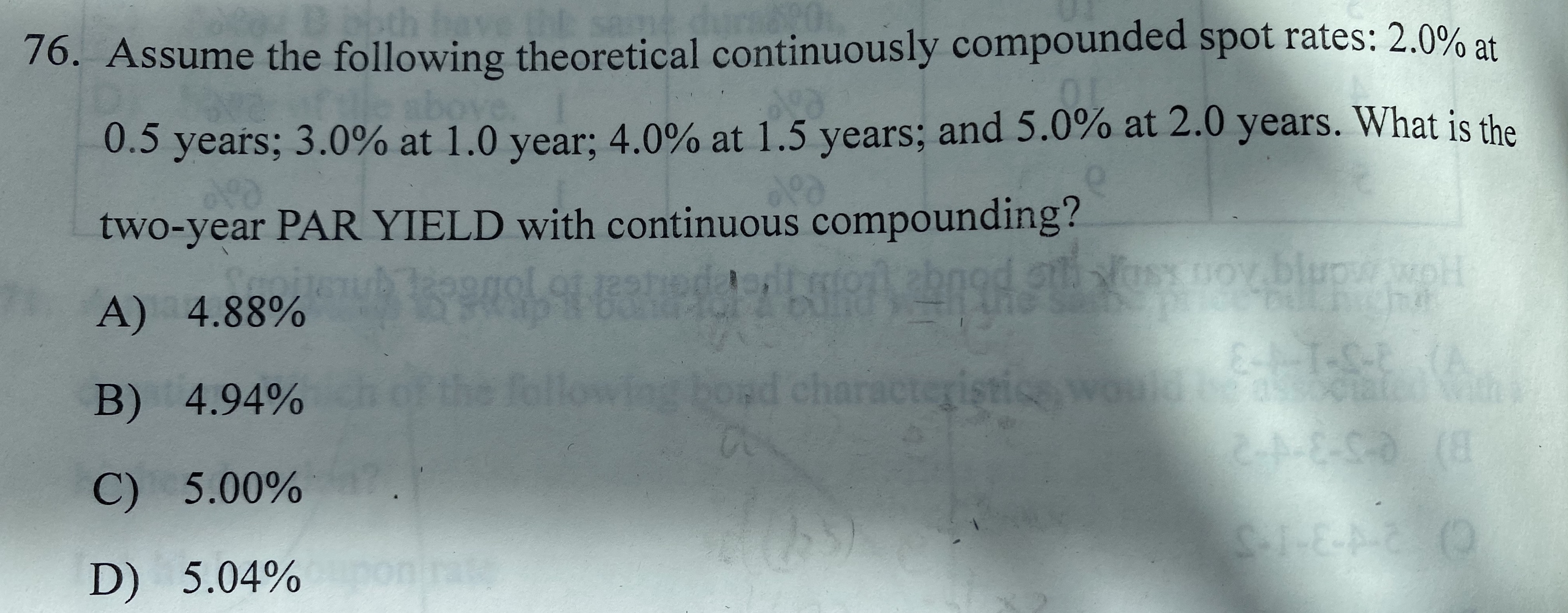 76题 这个题目解析过程可以参考下图,pay yield就是coupon和yield相等的时候 反求出来的利率;计算过程参考下图