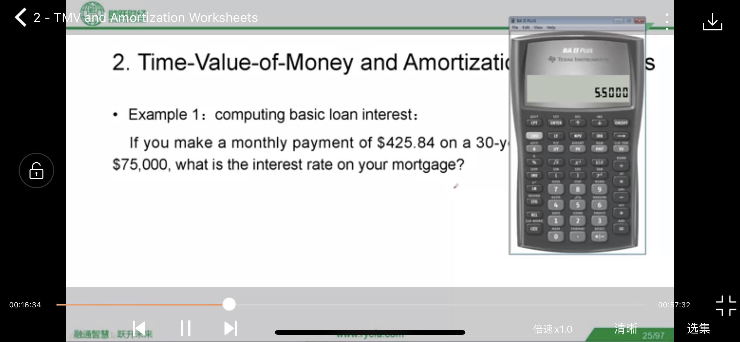 这道题应该先按PMT=425.84,N=360,FV=0,PV=负75000,再按CPT,最后按I/Y.结果应该是0.458,希望能帮到你