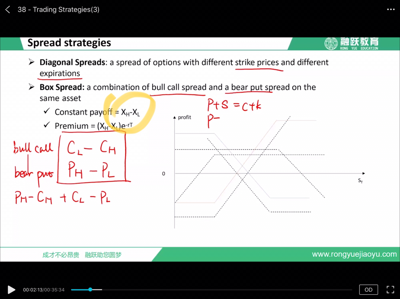 X和K 都是执行价格,S是市场价格。payoff 是你在这个策略中能获得的收益(含期权费)。premium 就是期权费。