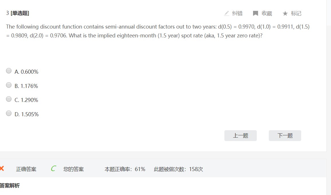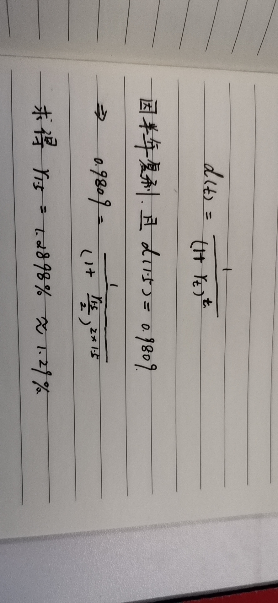 同学你好,这道题目的考点是贴现因子和即期利率之间的转换。