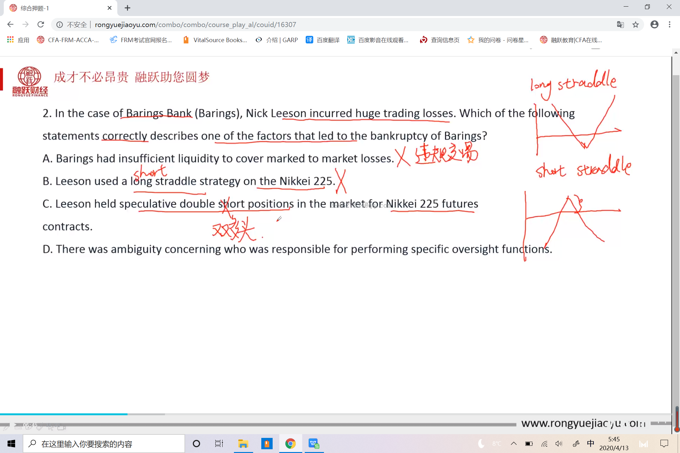 同学你好,long straddle是同时买入一份看涨期权和一份看跌期权,也就是一个多头一个空头,反之亦然,所以双空头是不对的