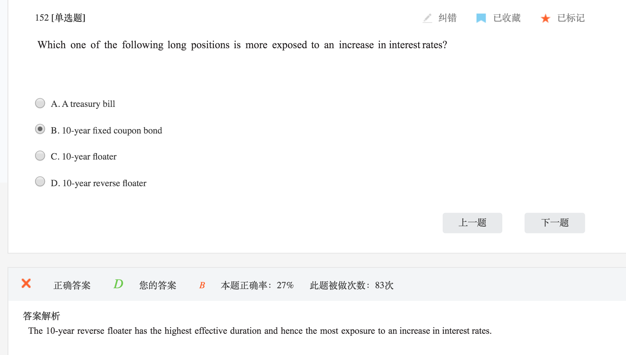 同学你好,这个反向浮动债券可以跟浮动债券放在一起理解。 首先,浮息债与LIBOR捆绑,且在付息后浮息债回归面值,付息的多少取决于LIBOR的变化。 零息债券,当利率发生上涨,债券的价值会发生下跌,所以敞口会减少。 以上这两种债券,当利率发生上升的时候,债券价格都是一个下跌的趋势,也就是说,债券价格下跌,敞口就会变小。 反向浮息债,影响他的最终利率取决于LIBOR和某一个基准,举个例子,反向浮息债通常会给你一个基准,比如10%,这个基准和LIBOR的关系是(10%-2LIBOR),也就是最终决定债券价格和付息数额的是(10%-2*LIBOR)这个利率决定的,在这里面我们可以明白反向是什么意思,即最终的利率和LIBOR是负相关的。那么当LIBOR发生上升,最终影响债券价格的利率反而会发生下跌,债券的价格发生上涨,敞口变大。