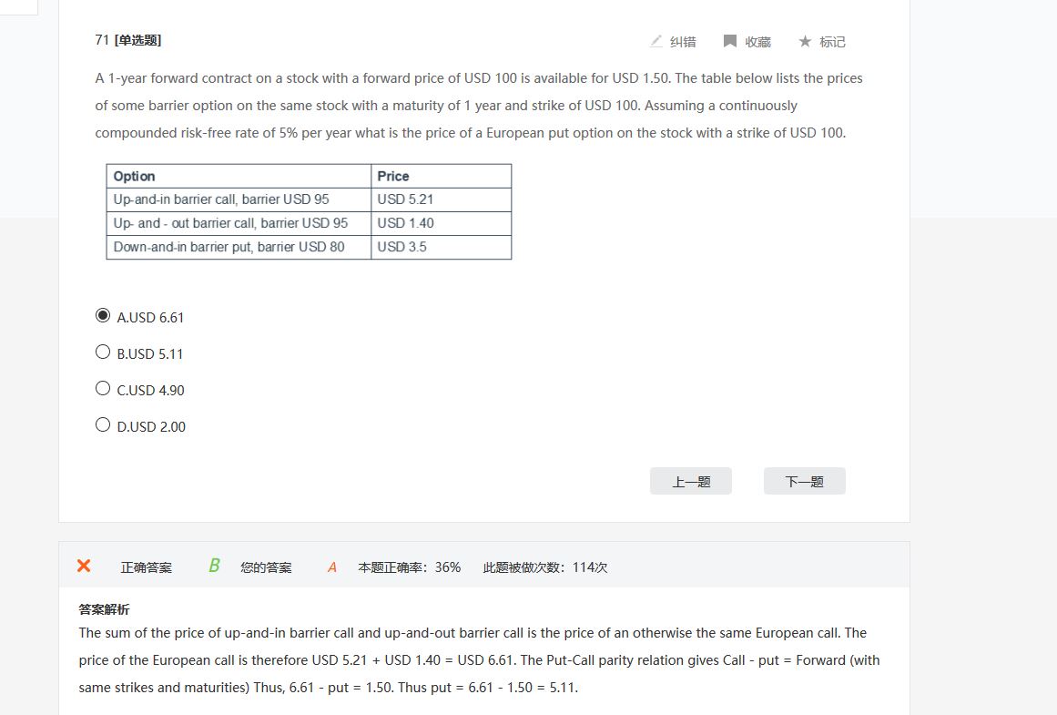同学你好,期权的平价公式是有特殊的使用前提的,这个你可以看看我们的讲义,关于平价公式的使用前提。 C-P=forward可以通过画图理解。文字解释大概是这样的: 首先我们看forward,对于long forward来说,如果标的价格上升,那么forward给你带来正的收益,如果标的价格下降,那么对你来说是一个亏损,而且我们讲过,forward在签订的时刻,成本是0。 我们来看期权,call option能给你一个在标的增值超过行权价以后,赚取增值部分的权利,但是你需要在0时刻交一笔premium购买这个权利。当价格下跌,你选择不行权,你仅仅亏了一笔premium。所以,forward和call option的区别,在于0时刻的一笔premium和下跌时,forward有和标的挂钩的亏损,而call option没有。此时如果你short一个put option,首先,你long call 支付的premium可以通过short put补充,合成以后,premium部分抵消。其次,short put给了你当标的下跌时,发生的与标的挂钩的亏损。两者结合起来,就模拟出了forward的效果。对于cash,stock,future都是实用的,也就是C-P不仅可以拟合forward,也可以拟合cash或者future或者stock。