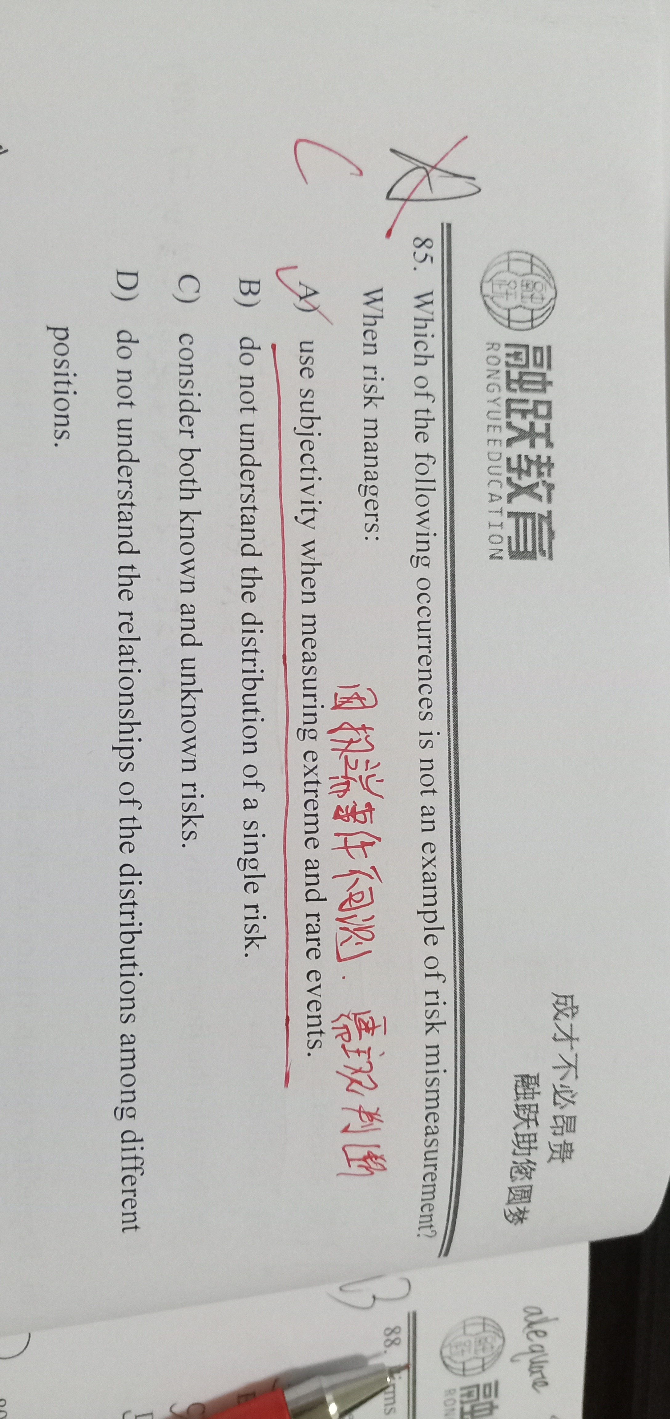 同学你好,这道题问的是不是风险测度误判的例子是哪一个,C选项跟风险测度没有关系,所以选C.