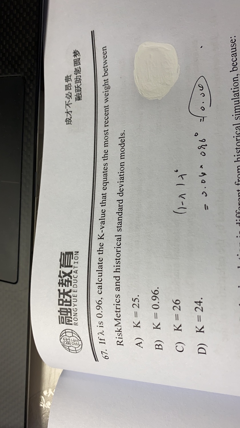 你好,这道题目涉及的知识点已经不在考纲范围内,如果想了解,可以看原版书book4里面,关于historical standard deviation部分的内容。