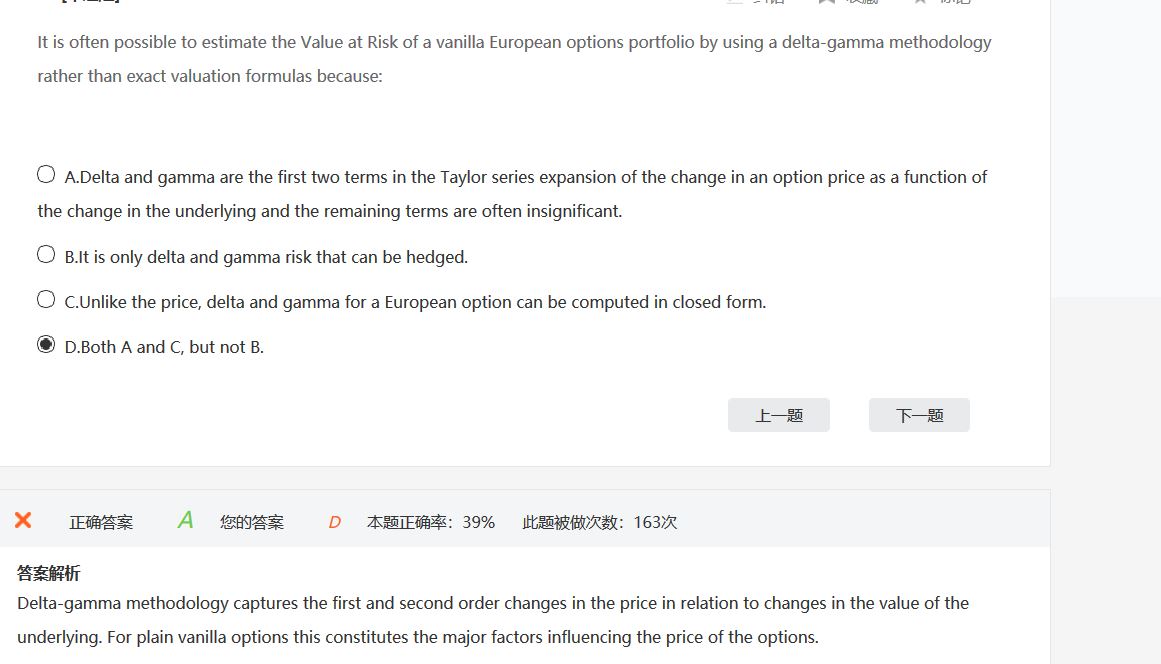 同学你好,closed form是封闭解的意思,也就是VaR完全可以由delta和Gamma所解释,而这点恰好和A选项的解释冲突,所以C选项错误。