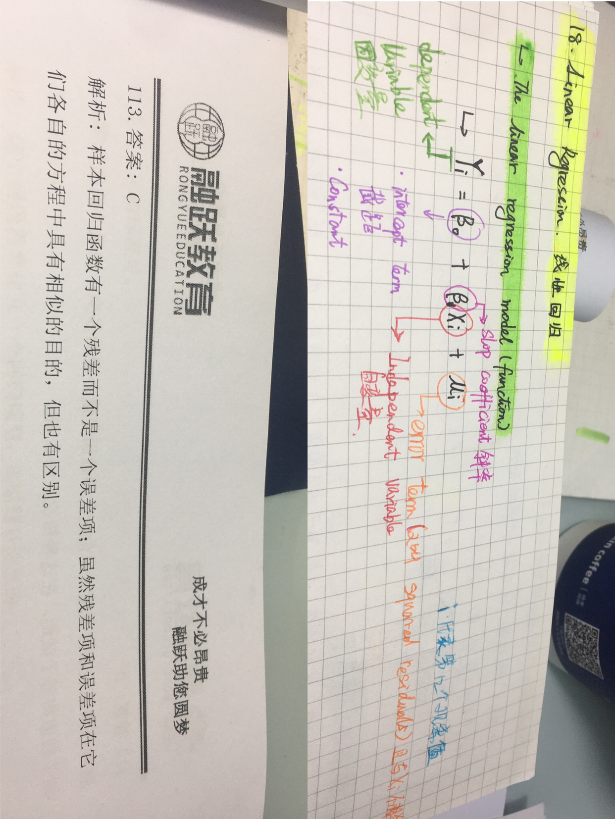 同学你好,误差项是Error Term ,残差项是Residual,两者实质都是一样。