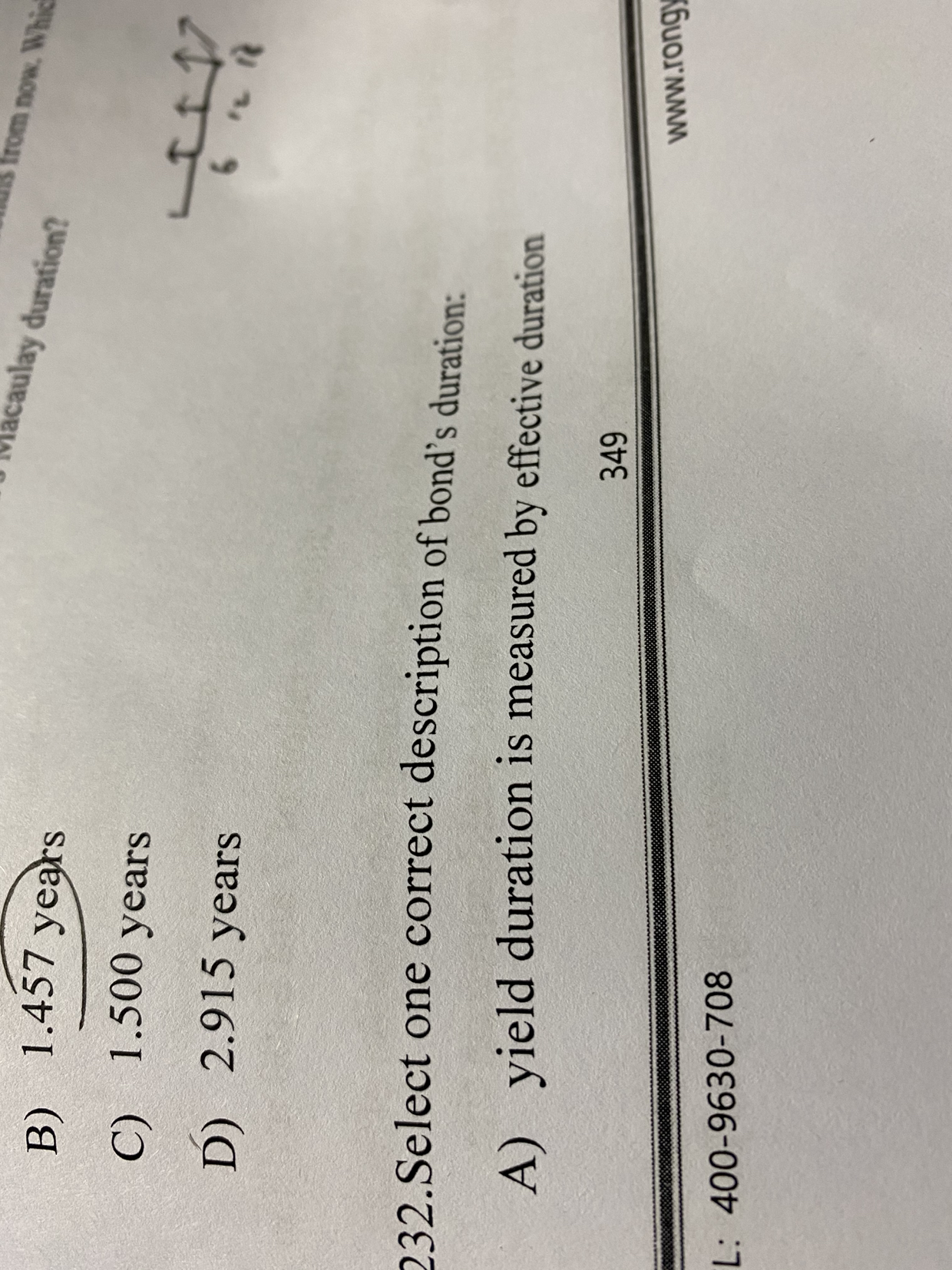 同学你好,yield duration指的是在收益率曲线平行移动的情况下,利率变动一个单位时债券价格的变化,一般用修正久期计算,有效久期仅仅是对修正久期的简单近似计算;而curve duration 是指收益率曲线非平行移动时债券价格的变化,一般用关键利率久期进行计算。所以A和B选项都是错的。