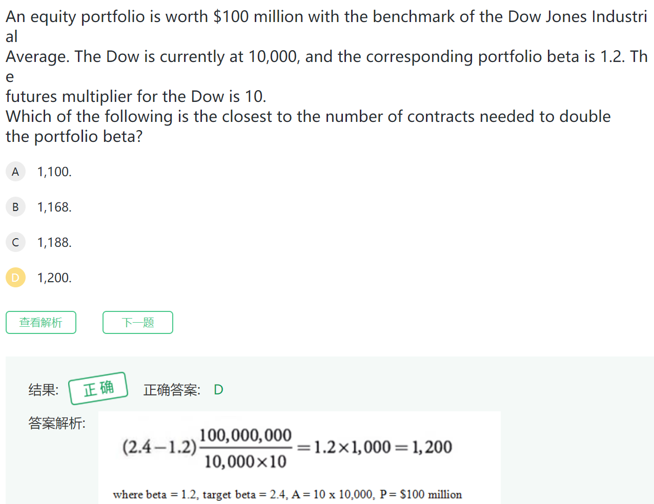 double the portfolio beta.原来的是1.2,double之后就是2.4.