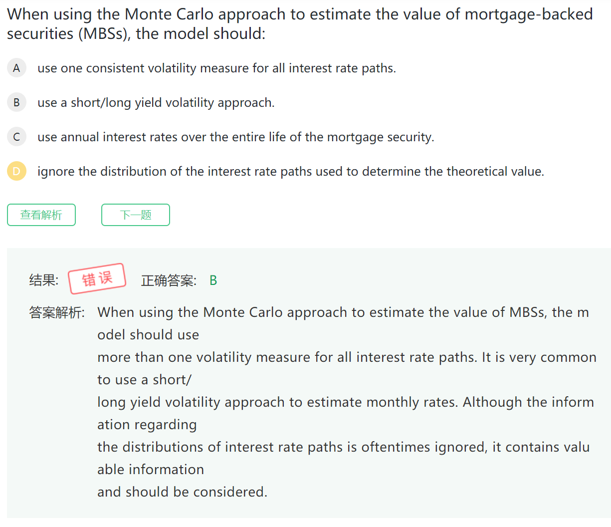 你好,我们在讲蒙特卡洛模拟的时候,说过蒙特卡洛需要假设一个分布,如果分布假设错误,那么结果一定是错误的。所以,我们再进行模拟之前,就要对分布进行好一个假设,不能忽略了这个步骤。