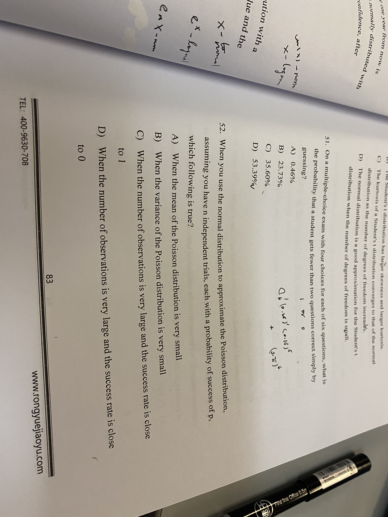 同学你好,这道题考察的是泊松分布的性质,在λ不大时呈偏态分布,随着λ的增大,迅速接近正态分布。一般来说,当λ=20时,可以认为近似正态分布,Poisson分布资料可按正态分布处理。泊松分布的均值=方差=λ,所以当用正态分布去近似描述泊松分布的时候,λ已经是大于20,此时泊松分布的均值和方差都不小。所以ABD 都错,选C。
