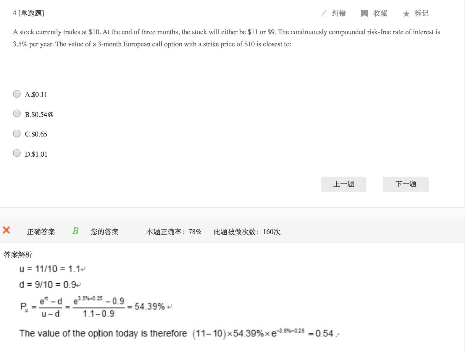 合理,如果题目中给到明确的U和d的值,那就直接用。如果没有明确给出,需要计算的话,用d=1/u这样一个关系。