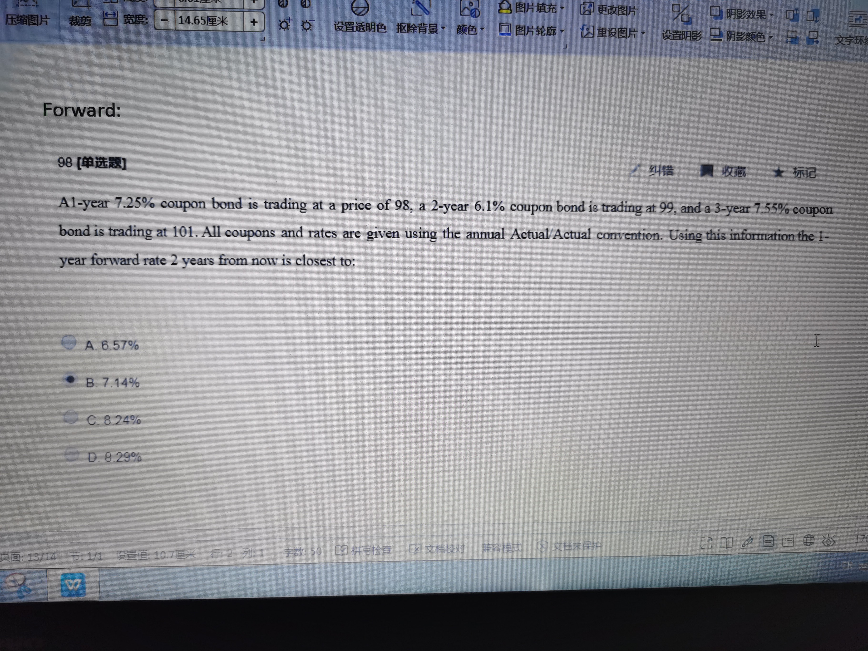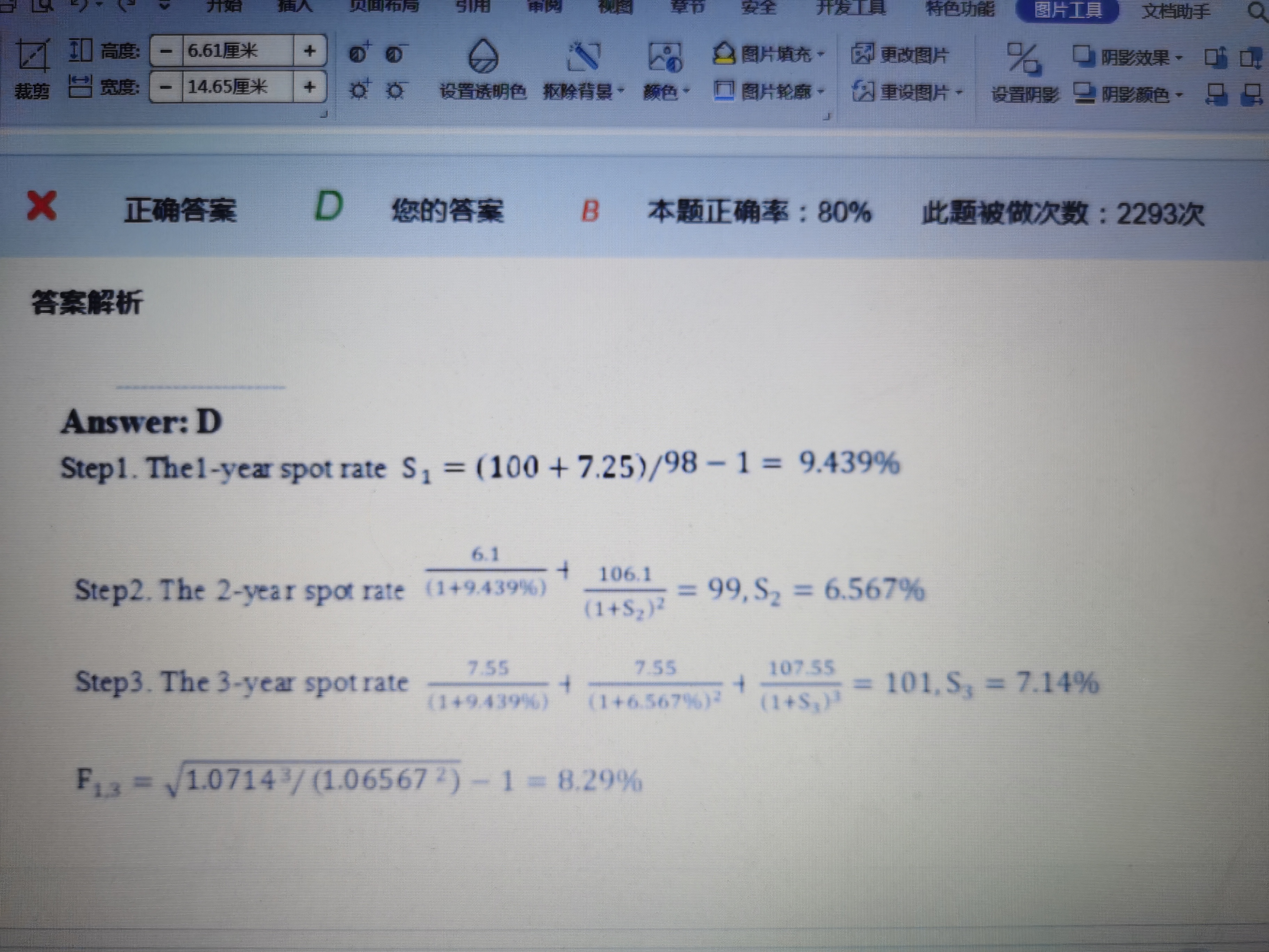 在远期利率和即期利率部分。将答案解析中的根号去掉,看我下图中的作答。