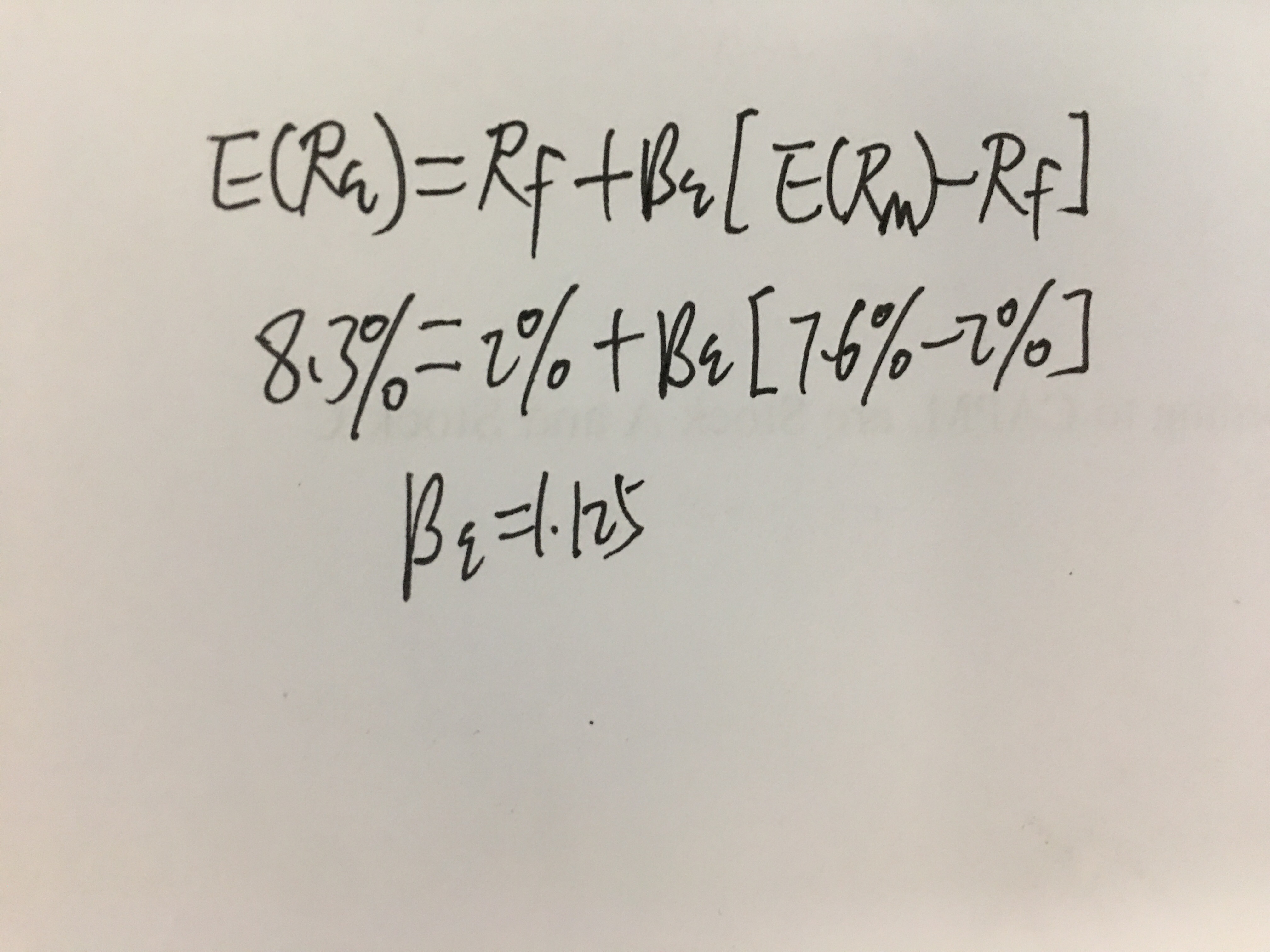 同学你好,这道题考察的是CAPM模型公式。参考下图片,带入公式即可