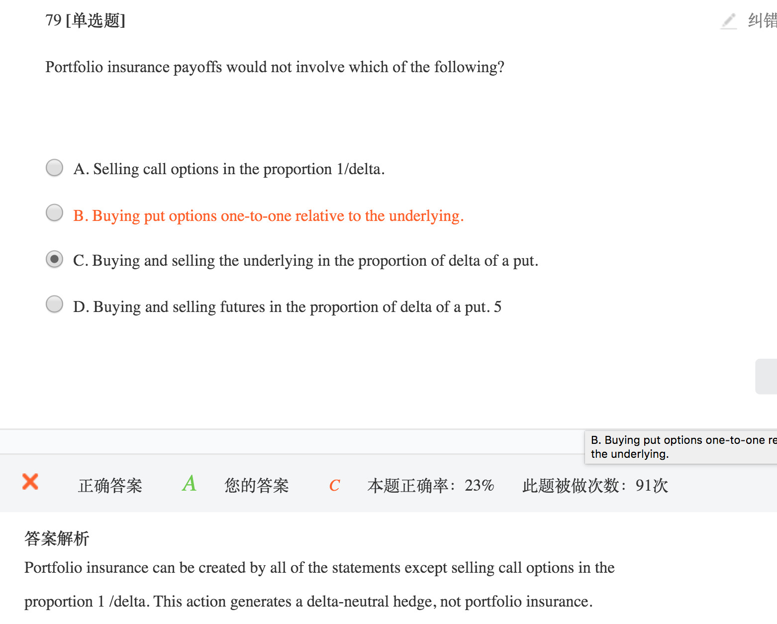 同学你好,这道题考察的是第三门课中的希腊字母,这里是指我们可以把put option 看做是一个保险,用于保护我们的标的资产价格下降时的损失,而这个put option可以由标的资产或者标的资产对应的指数期货。所以只有A与portfolio insurance payoff 无关。