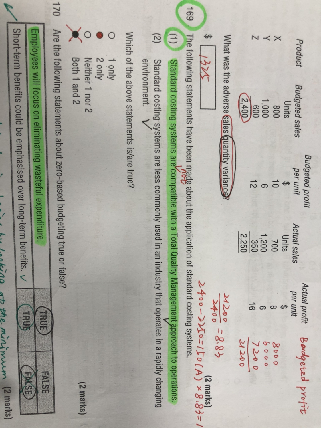 对于standard costing其目的是to achieve standard cost;而对于TQM主要的principles 是持续提升至完美状态及零瑕疵continuous Improvement and zero defects。