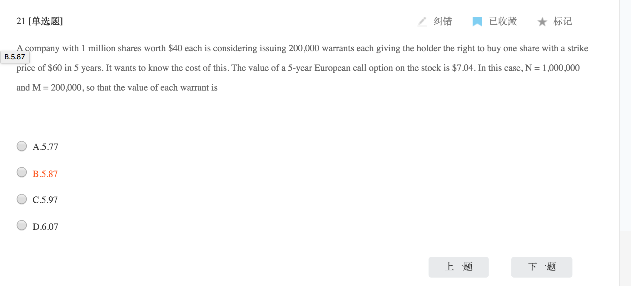 同学你好,这道题考察的是第四门课估值中期权部分权证和股票期权部分权证价值的计算。参考图片理解