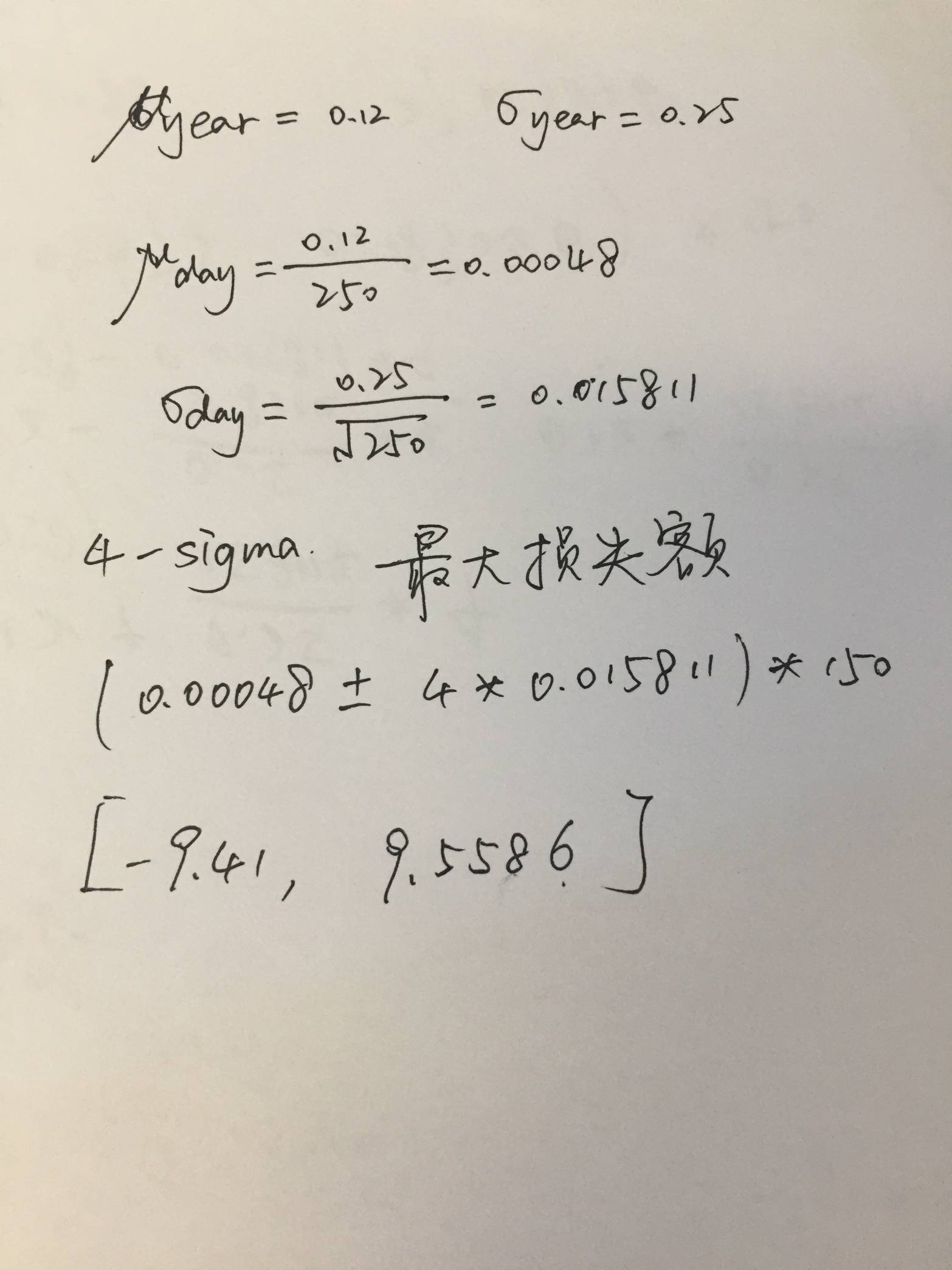 最大损失额就是VAR, 题目信息均值和方差有用,将年化的转为日收益和日波动率。
