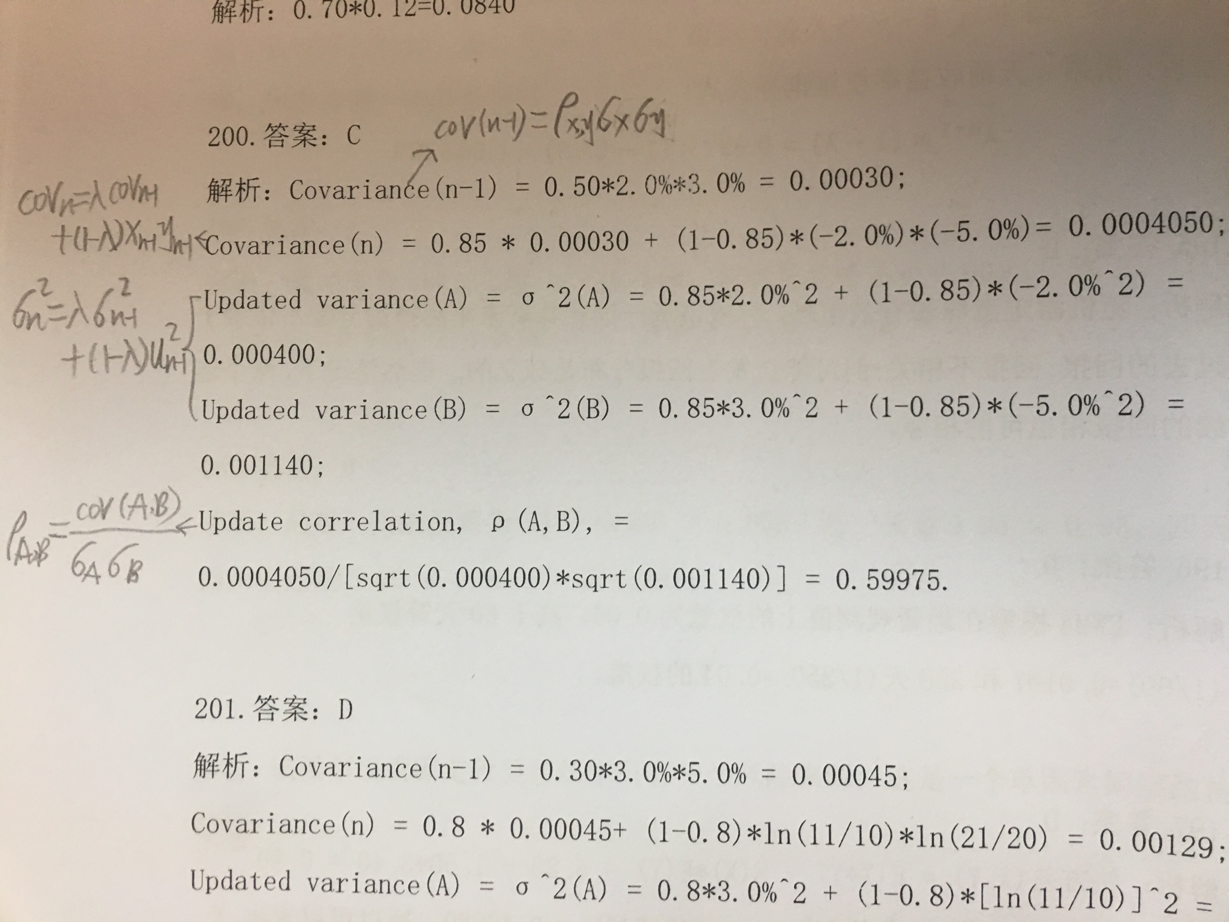 同学你好,这道题考察的是相关系数的更新估计部分内容,对应的公式我已经在图片中标出来了,参考下图片。