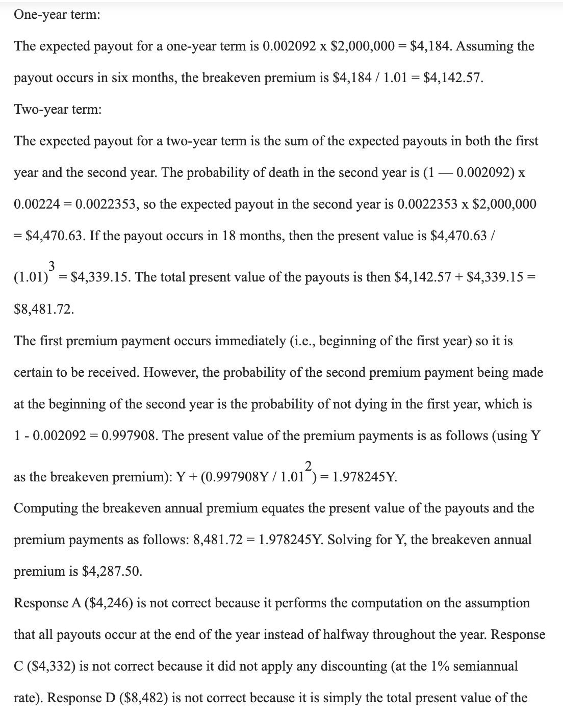 同学你好,求均衡保费的例题是要有死亡表的,如果这道题没有的话,就不用管它了,公众号:FRM之家里面最近有一篇文章,里面有例题讲均衡保费的,你可以参考一下。