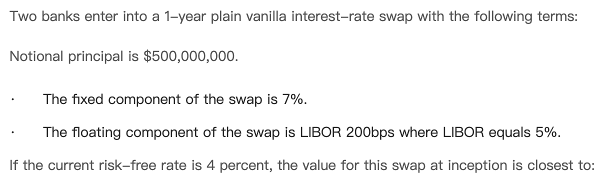 同学你好,互换在初始时刻,价值就是0。