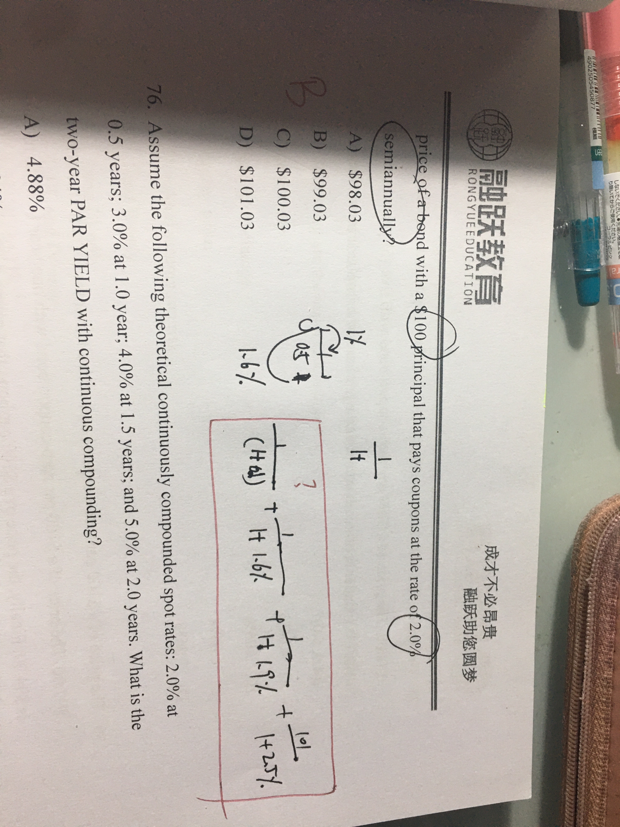同学你好,你的算法忽略了亮点:第一,应该用连续复利法;第二没有考虑复利频次,答案写的很明白。
