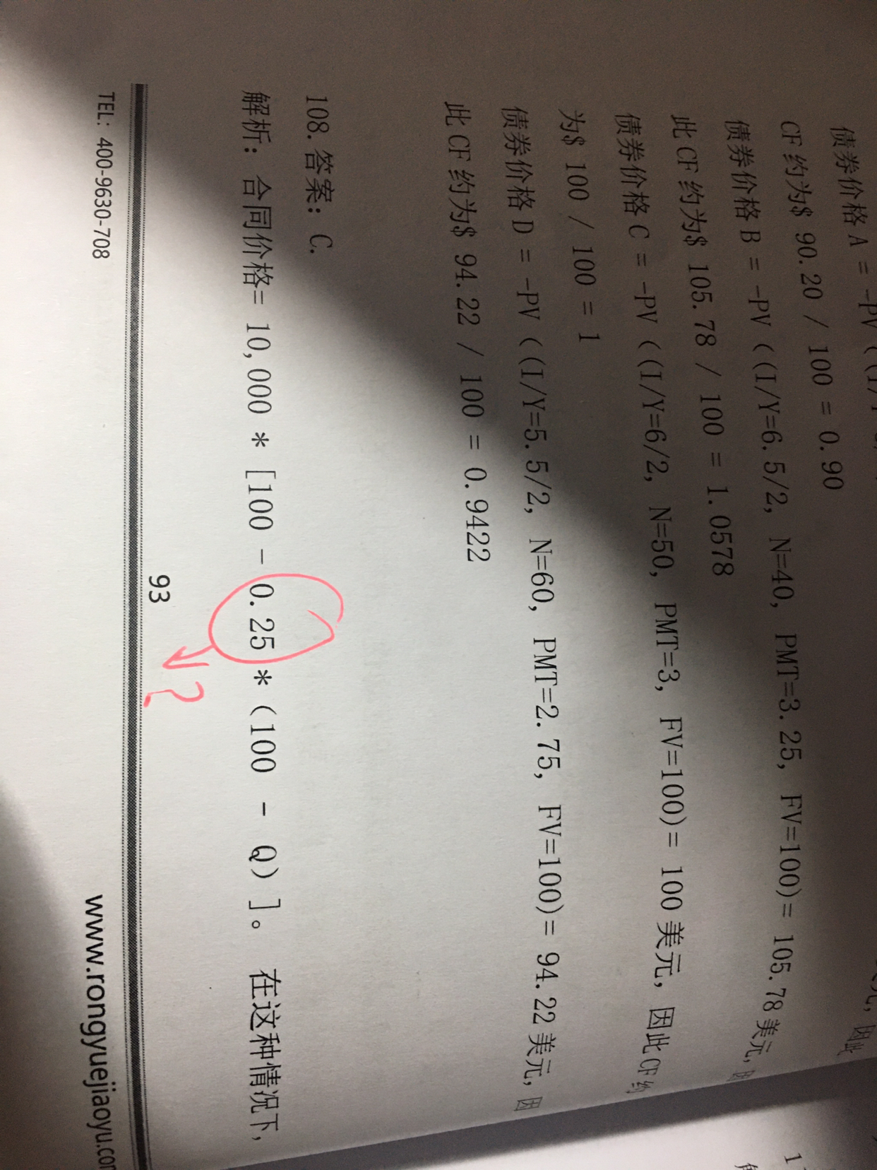 0.25是90/360天。euro dollar都是3个月期限的,这是欧洲美元的价格与利率之间的关系,精讲班有详细的解释。