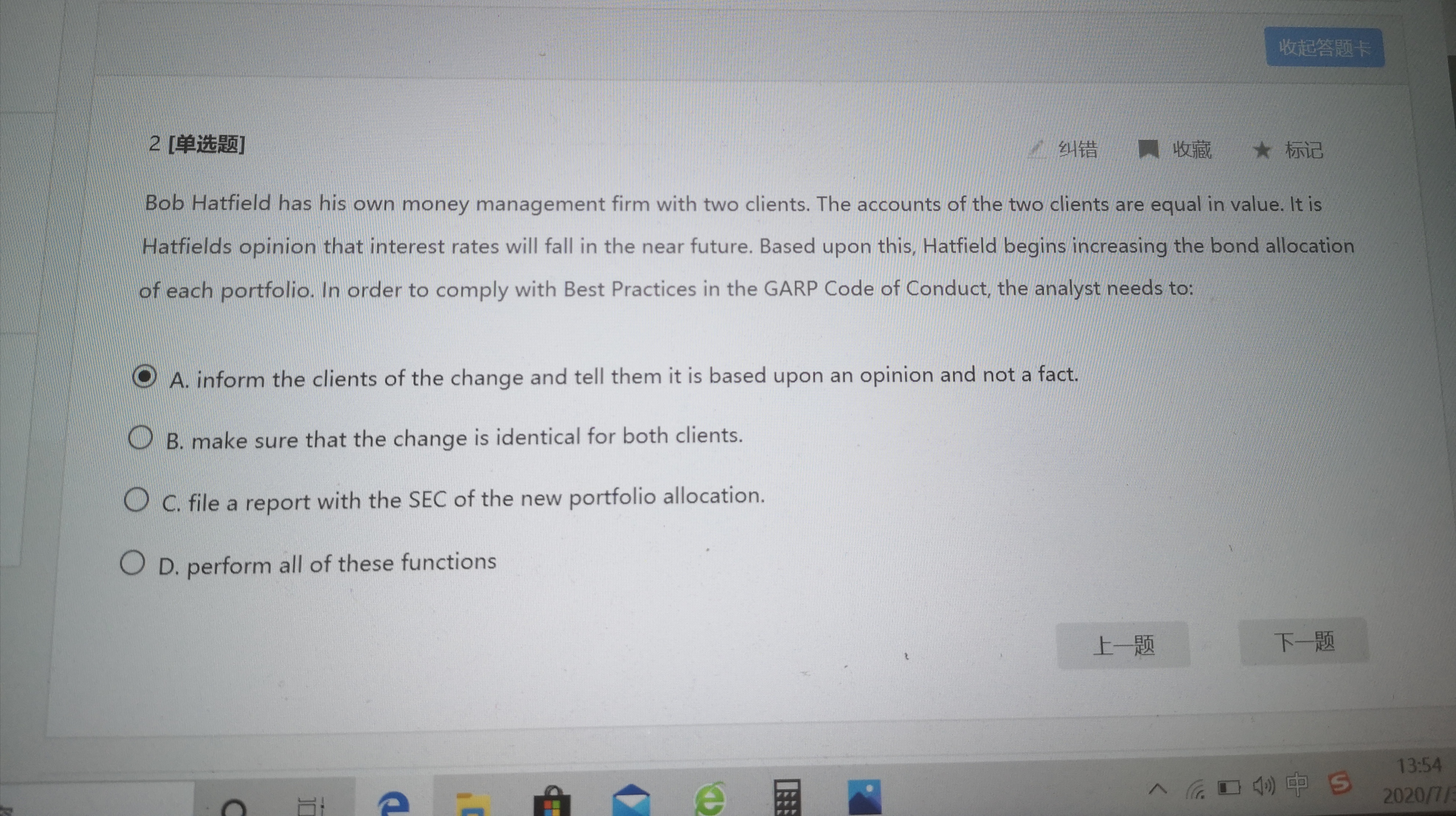 同学你好,C的意思是向SEC(美国证券交易委员会)报告新的资产配置情况。投资经理不需要把资产配置情况上报SEC。