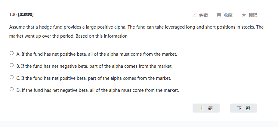 同学你好,题目给出的背景条件是由一个正α,市场处于上升阶段,所以一定是一个正β,β一般小于1,所以是部分归因于市场的上涨。