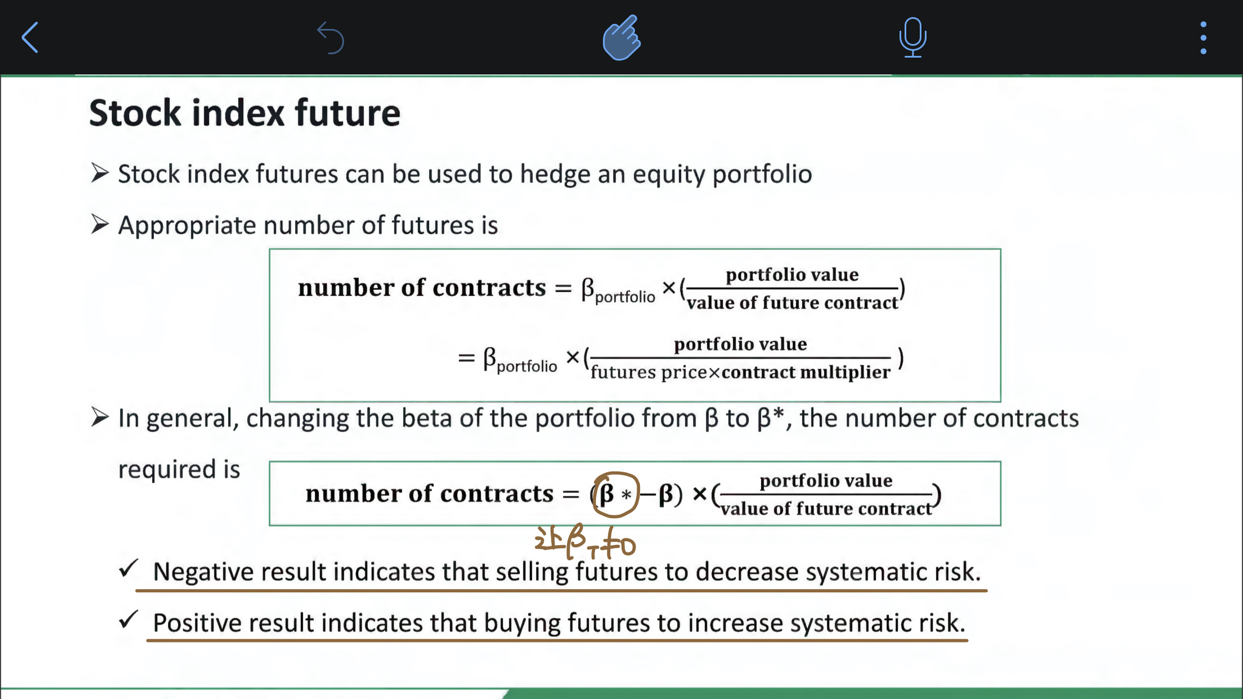 同学你好,关于第一个问题,β指的是组合对市场的敏感性;关于第二个问题,当结果大于0的前提条件是β*大于β,也就是组合对市场的敏感性上升,也就是说需要通过买入期货合约去增加β值(也就是增加系统性风险),这点没毛病,你可能不理解的是为啥要增加系统性风险,在实务中可能会出现一些组合里有β为负的情况,所以要再另外一个组合里面通过购买期货合约去增加这个组合的β,从而使得整体组合的β达到一个稳定的状态或者为0的状态。