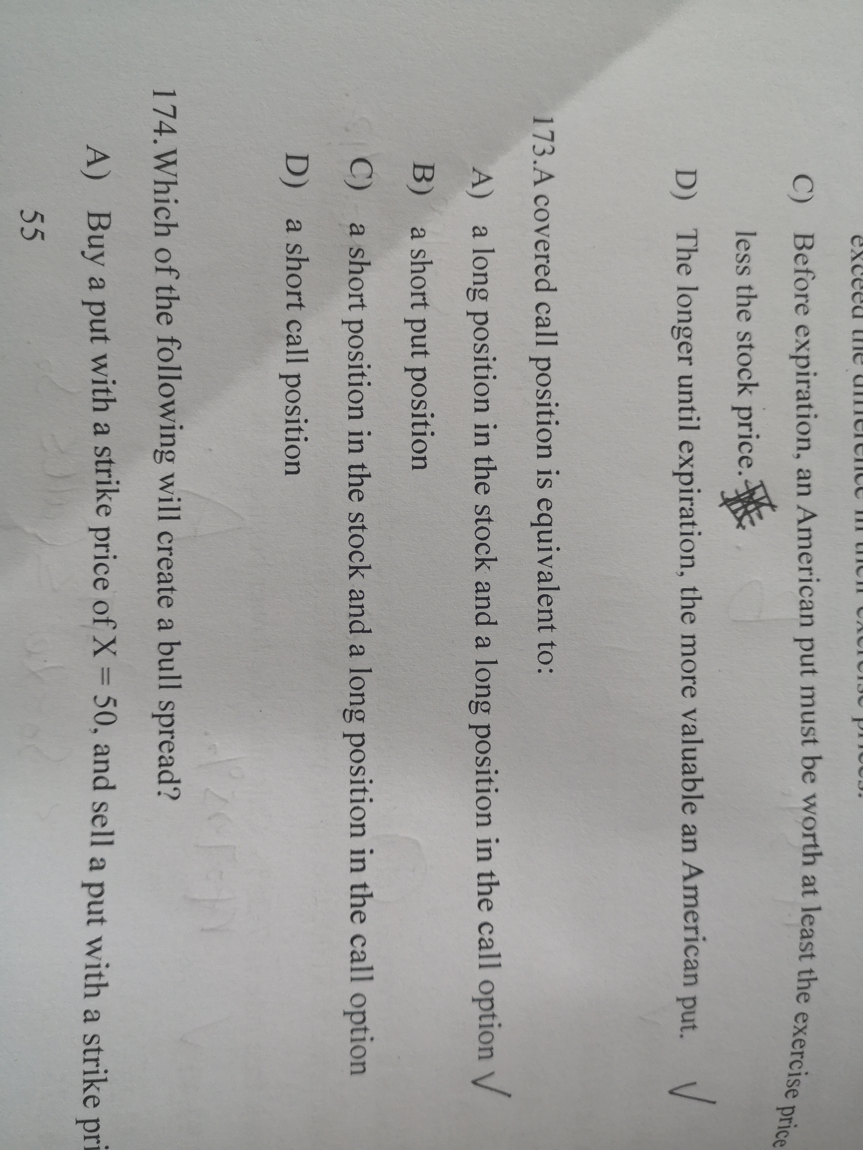 有保障的看涨策略就是股票的多头头寸加上看涨期权的空头头寸,所以组合起来是一个看跌期权的空头。