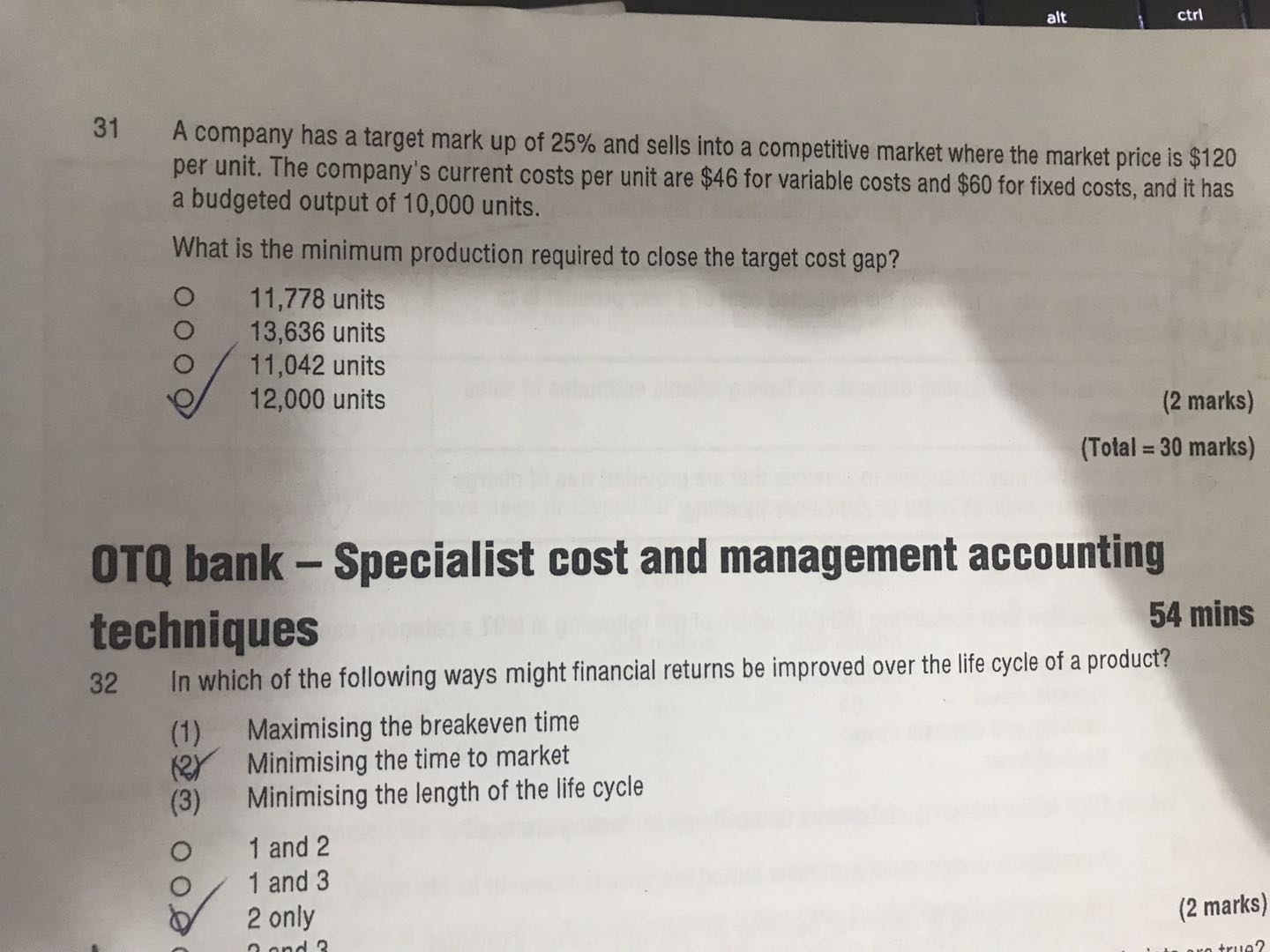 是求如果我们想要达到我们的mark up 利润,总的fixed cost=10,000*60= 600,000金额不变,但我们通过计算发现要实现我们的target cost就必须将fixed cost/unit单位产品的固定成本控制在50,那么我们最少要生产多少才能达到,就是600,000/50=12000units