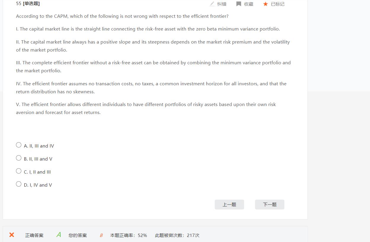 同学你好,IV项的意思就是说有效边界理论是建立在无任何费用假设、投资者的投资期限只考虑一个相同的单期投资持有期假设、所有投资者都有同质预期假设(即投资者的收益分布相同)。