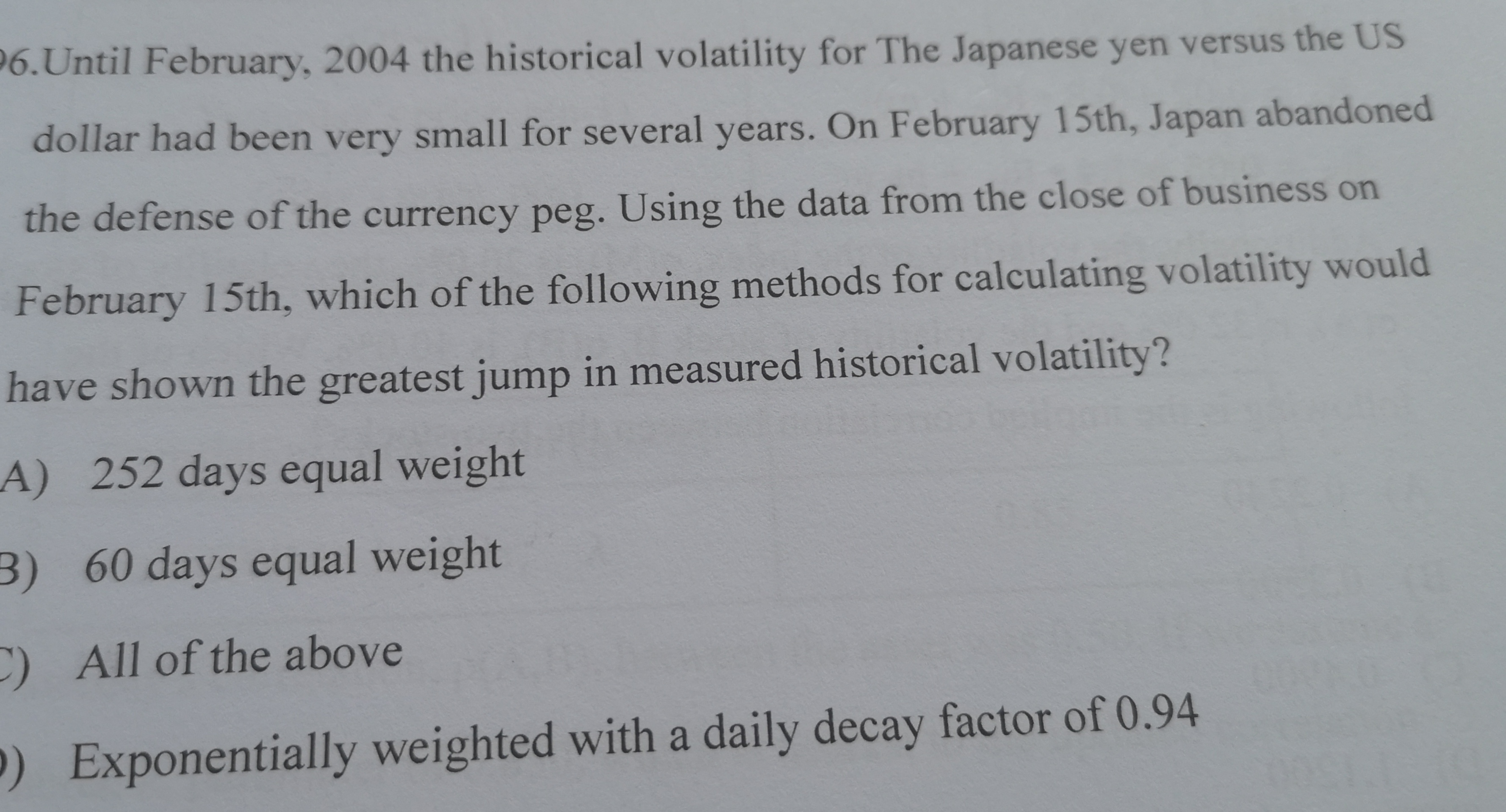 本题内容在第四本书波动率章节,上面几道题已经说过,选D的理由是,波动率权重以指数递减远比等权重波动更大。