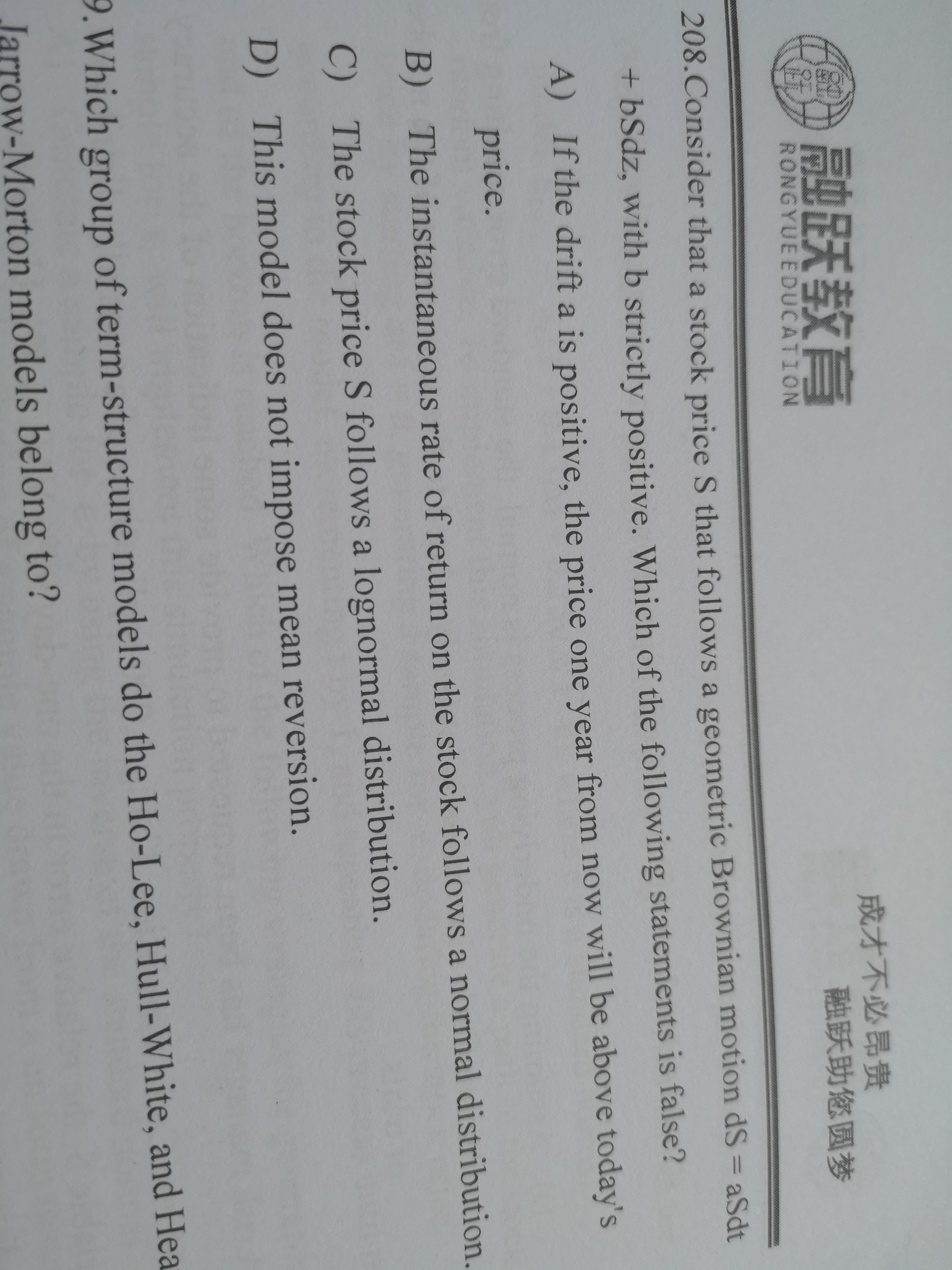 同学只用把第四本书中的BSM模型中关于几何布朗运动的知识点了解即可