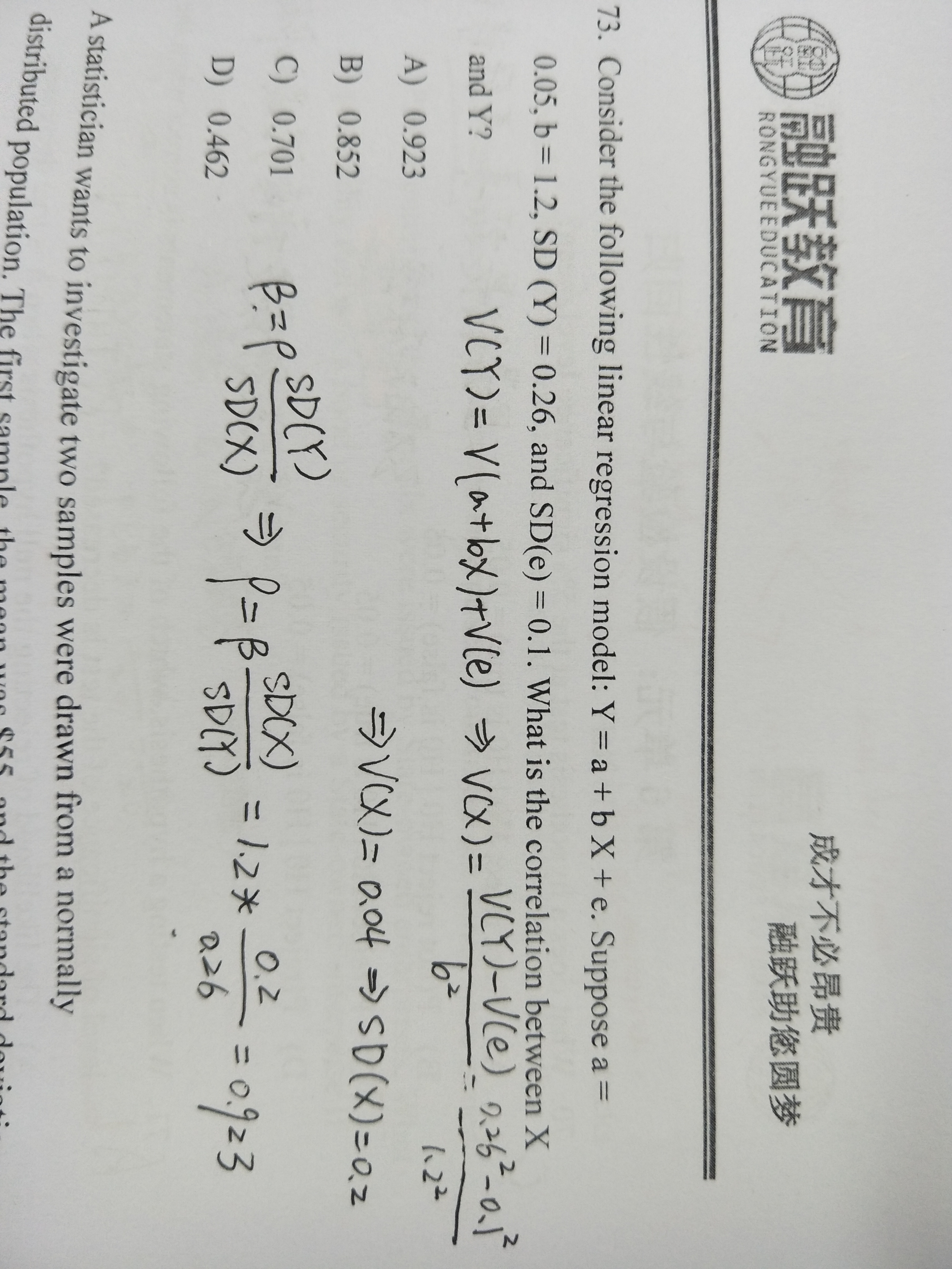 这道题考察的是方差的性质和β的计算,具体计算参考图片