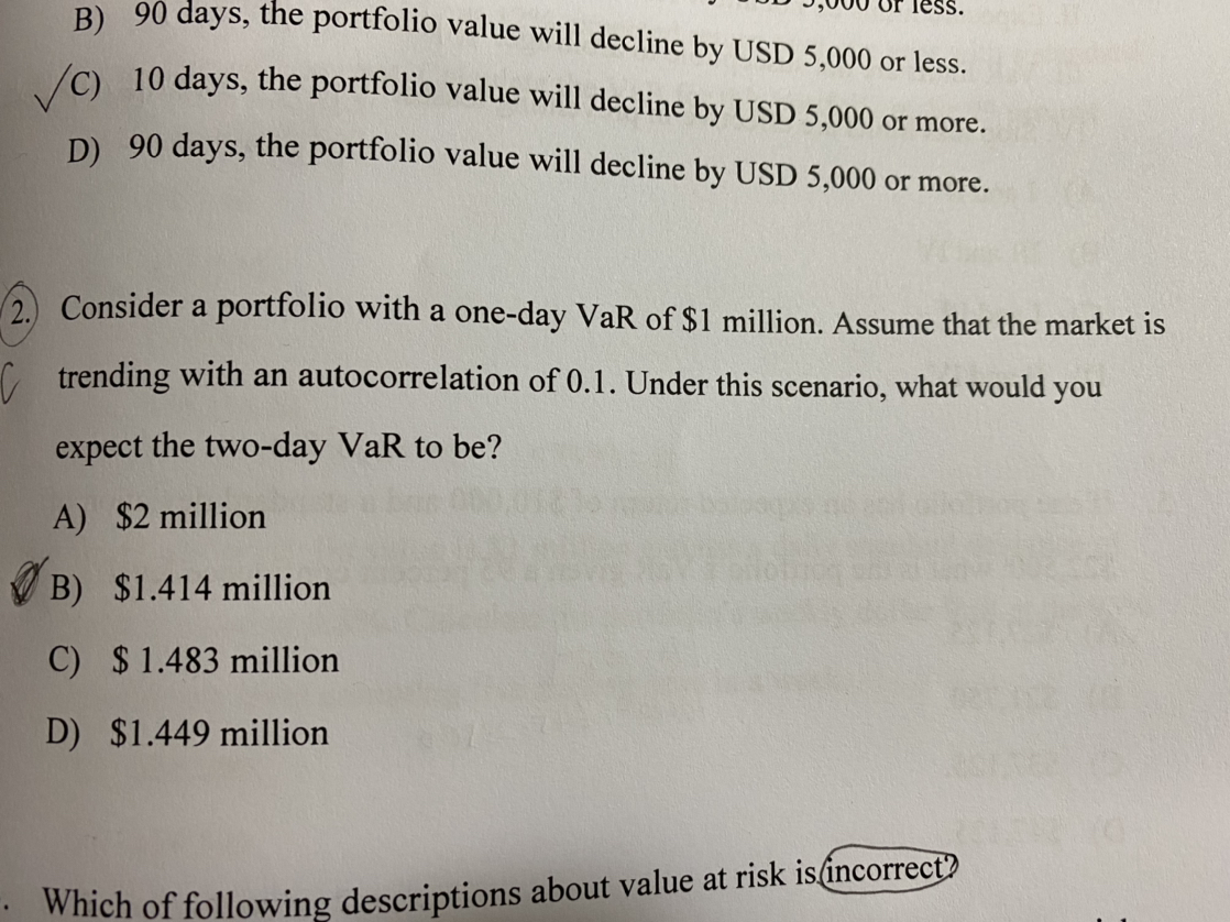 同学这道题考察的是利用平方根法则求VaR,而平方根法则是有前提条件的,即两个资产的收益率分布是独立同分布的,即相关系数为0,而题目中是把该假设修改成相关系数为0.1,这就需要从平方根法则推导过程去理解。具体参考图片。