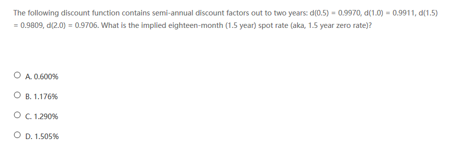 同学你好,这道题考察的是折现因子与即期利率之间的转换计算,具体计算参考图片