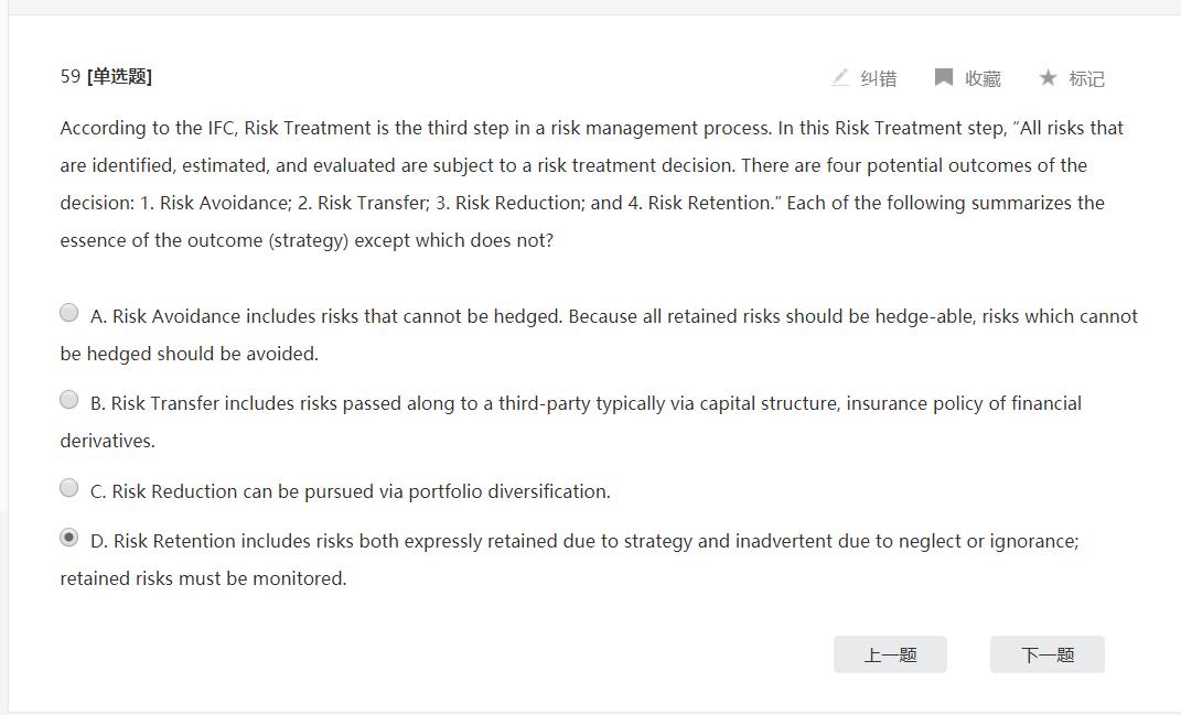 同学你好,关于B选项,风险转移主要是通过保险合约把风险转移给第三方,并没有提到资本结构,所以B错;关于D选项,保留的风险当然要监控,根据风险的类型看是要通过提高准备金进行内部消化还是通过对冲进行转移,至于静态对冲就是指定期做下对冲就行,不需要实时保持风险敞口为零,所以不需要实时监控,只需要定期监控就行了。