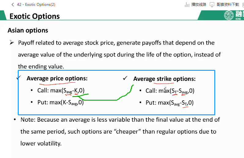 average price option里的K是固定不变的,但是S是一个平均值;average strike option中的K是一个平均值,S是期权合约到期的的价格ST。