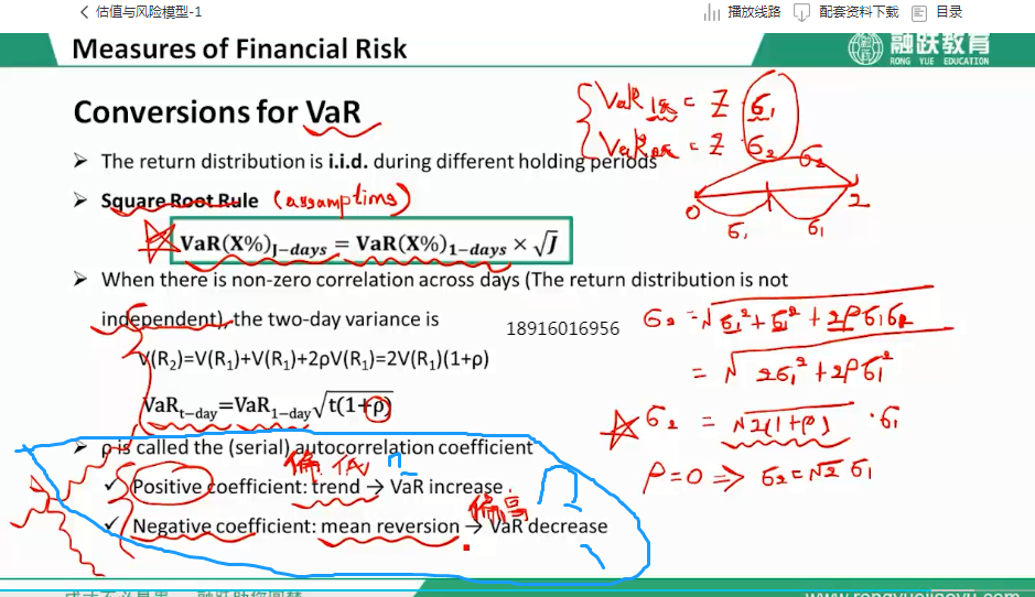 正的相关系数意味着ρ是大于0的,所以根号下的内容(根号下2(1+ρ))就大于根号2,所以这时候实际的var是大于通过根号2计算出来,也就是大于平方根法则计算出的,也就说通过平方根法则计算出来的会比实际的小。负相关系数是指当ρ小于0的时候,这时候根号下2(1+ρ)就小于根号2,所以实际的var会小于通过平方根法则计算出来的值。