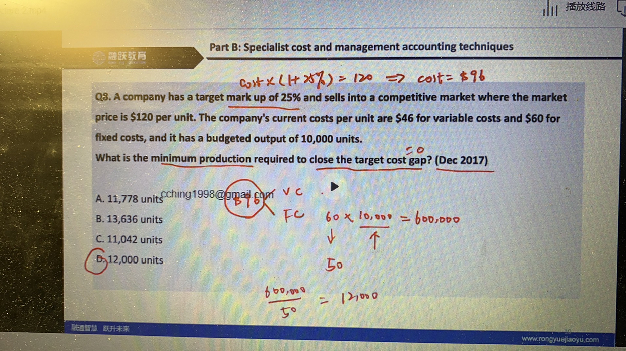 Total Fixed cost 总的固定成本是不能变的,而Total Fixed cost= Fixed cost per unit*units,是可以通过增加units来降低Fixed cost per unit单位固定成本的金额的。