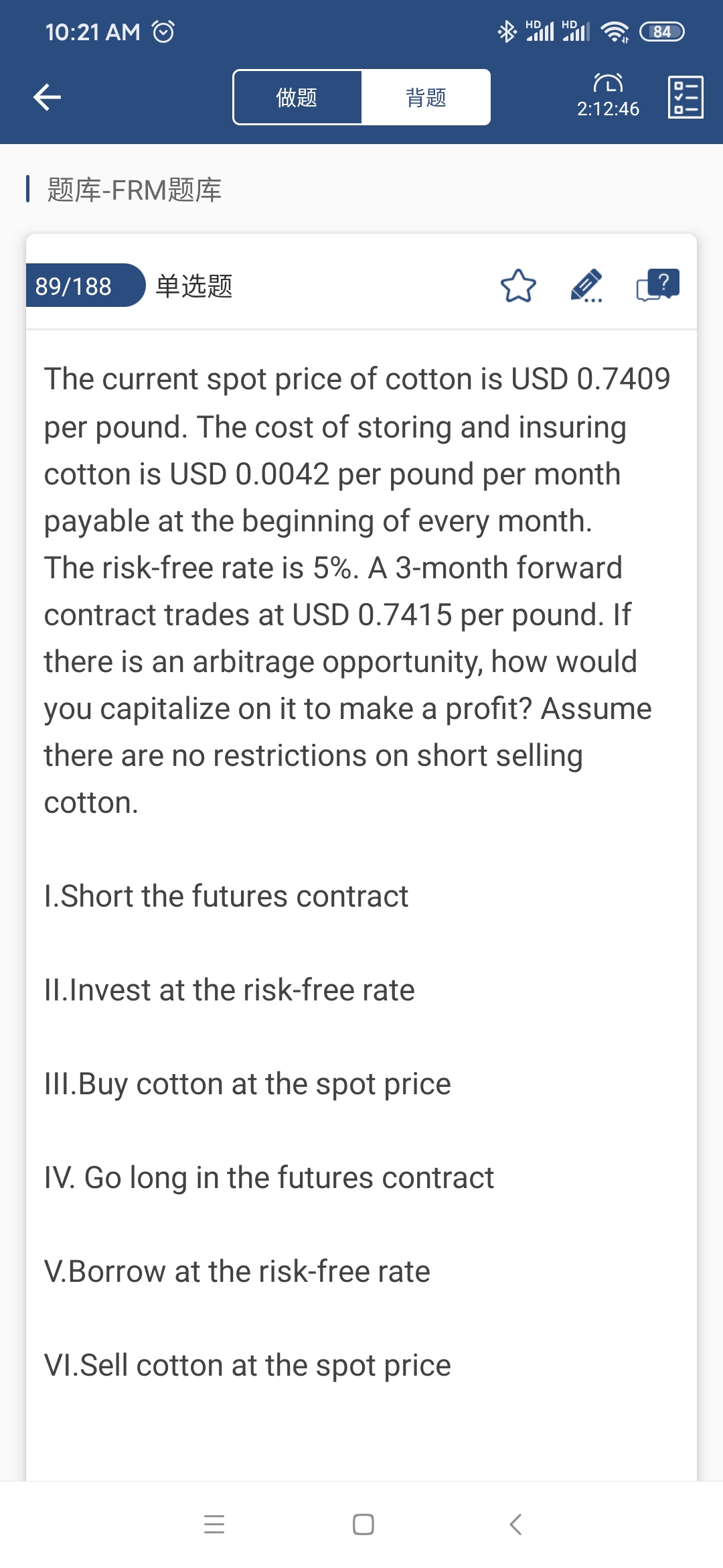 同学你好,这道题是通过求理论上3个月的远期合约的市场价格【(0.7409+0.0042)*e4%*3/12】为0.754472,大于现在的远期合约价格0.7415,说明现在远期合约价格被低估,所以要买入对应的期货合约,卖出现货,而由于期货合约是到期交割,所以投资者可以先把现金投入到无风险资产。