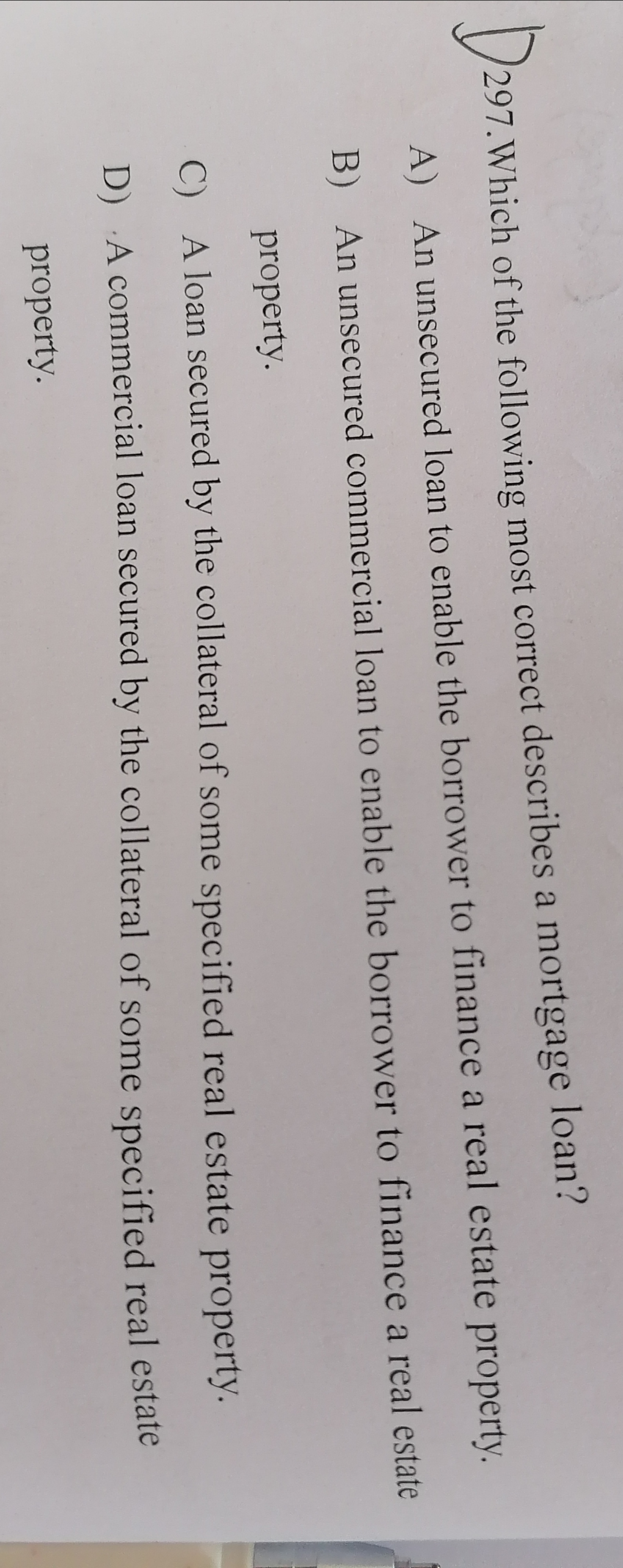 同学你好,mortgage loan特指住房抵押贷款,主要是住宅类房产;而commercial loan特指商业房产抵押贷款,主要是商业房产,二者是不一样的。